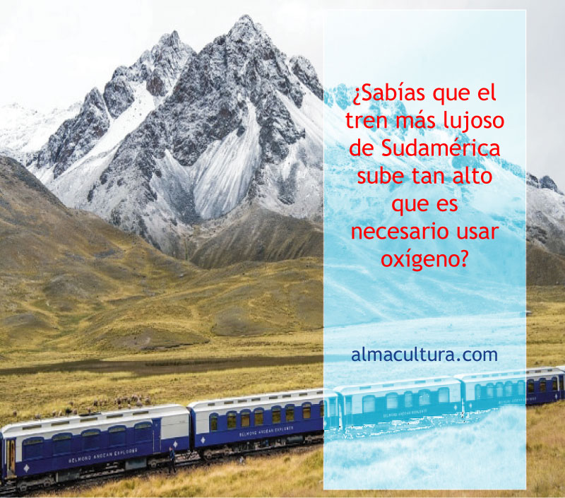 El Belmond Andean Explorer es el primer tren de lujo que tiene Sudamérica. Este viaja por la cordillera de los Andes Peruanos, una de las rutas más altas del mundo y por lo tanto, los pasajeros reciben tanques de oxígeno. Inaugurado en mayo de este año, el Belmond Andean Explorer recorre uno de los paisajes más bellos del mundo atravesando las altas llanuras de los Andes, de Puno a Cusco. Desde el Cusco hasta el Lago Titicaca y Arequipa, explorando las maravillas naturales y antiguos reinos en travesías de una y dos noches. El tren se mueve en una de las mayores rutas de ferrocarril en el mundo, a una altitud de 4 km sobre el nivel del mar, por lo tanto, se cuenta con la presencia constante de una enfermera que en cualquier momento puede proporcionar el oxígeno a los pasajeros. Recorre el lago navegable más alto del mundo a 3,810 metros sobre el nivel del mar. Las montañas del valle de La Raya son el punto más alto del viaje a 4,270 metros. Las verdes laderas se elevan precipitadamente a crestas oscuras de hielo y tormenta.El Belmond Andean Explorer es un tren de gran lujo con cabinas con camas dobles, “twin” o literarias. Cada cabina tiene su propio cuarto de baño y ducha. El diseño es moderno y cómodo. El Coche Lounge es un vagón dedicado al disfrute de los pasajeros.Tiene un piano de media cola, cómodos asientes, majestuosas vistas y cócteles de lujo. El Belmond también dispone de dos coches restaurantes donde podrás probar coloridos y frescos platos con ingredientes locales de los Andes peruanos. Por último, tenemos el coche observatorio, un lugar para relajarse, hacer amigos y disfruta de un Pisco sour (un cóctel peruano). También podrás respirar el aire andino desde la cubierta abierta del coche de observación a medida que el tren viaja a través de un paisaje siempre cambiante.La habitación doble más barata con atracciones, cuesta aproximadamente 2.2 mil. dólares.